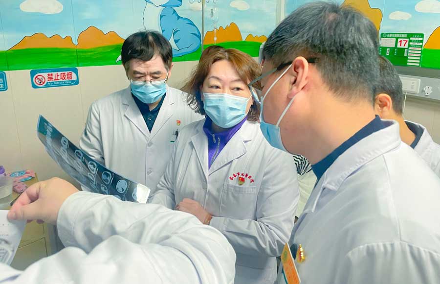 在教学查房中,儿医专家仔细倾听主治医生的病例汇报、查阅患儿的X光片,逐一查体,了解患儿的病情,分析治疗措施并制定科学的治疗方案,进一步提高双阳区医院儿科医生的诊治能力。