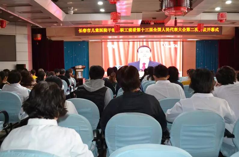 3月5日9时,a片网站 多功能厅中,百余名干部、职工早早候在会场,等待观看“第十三届全国人民代表大会第二次会议开幕式”现场直播。参会人员有党员干部、机关后勤职工,还有部分临床一线下夜班的职工,他们不顾休息,特意来参会观看。伴随着会议议程,a片网站 干部职工听取政府工作报告,感受会议氛围,关注国策民生,学习会议精神。