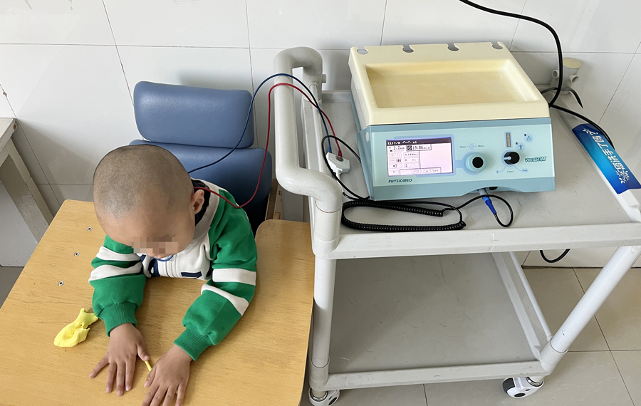可直接透过颅骨达到脑内较深层组织,在脑内生成感应交变电场,对脑组织和中枢神经实现磁电综合干预的效果。感应电场能促进大脑细胞的生长发育,提高损伤细胞的自身修复能力,改善脑瘫患儿情绪不稳定和自闭状态,促进脑功能的恢复。
