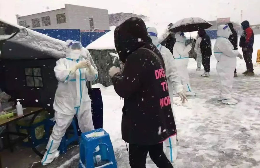 为全力做好疫情防控工作,院党委发出号召,倡议广大党员践行初心使命,“我是党员我先上”,争当疫情阻击先锋者,为坚决打赢疫情阻击战贡献力量。广大党员干部纷纷响应,主动报名,一个个迎难而上、无私奉献的请战姿态不断涌现。无论是外出支援还是在院坚守岗位,他们冲锋在前、勇挑重担、敢打硬仗,与时间赛跑,与病毒较量。有一种责任,叫党员冲在前方。“疫情不退、我们不退!”核酸采样党员突击队走遍长春的街头巷尾。疫情高发期,几乎每天一轮核酸采样,时间紧任务重,他们没有丝毫犹豫,或披星戴月,或风雨兼程,无惧寒冷和雨雪,深入不同社区(村屯),全力做好疫情防控“排头兵”。有人晕倒在了采样台;有人穿上防护服10多个小时不吃不喝连续工作;有人瞒着家人冲锋陷阵……哪里最困难、哪里最危险,哪里就有共产党员,他们用实际行动展现了新时期共产党员的先锋形象。在党员的感召下,2名入党积极分子表现突出,在抗疫一线入党;赴九台支援核酸采样队有17人递交了入党申请书。 “疫情在哪里,我们就要战斗在哪里!”全院298名共产党员积极参与到预检流调、发热门诊、核酸采样、核酸检测、医疗救治、院感防控、宣传引导、志愿服务、后勤保障等工作中来,全面充实一线疫情防控红色力量。危急时刻方显勇毅,众志成城共渡难关。每一次付出,每一场奉献,积聚成儿医人 “战疫必胜”的强大信念。全院党员干部上下一心,用速度、力度和温度,在战疫中磨砺初心使命,在战疫中汇聚力量,在战疫中展现党员风采,凝聚起了抗击疫情的强大正能量,让党旗在战疫一线高高飘扬。