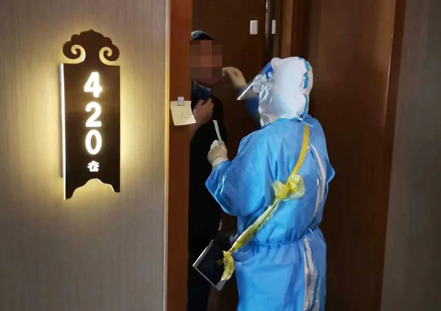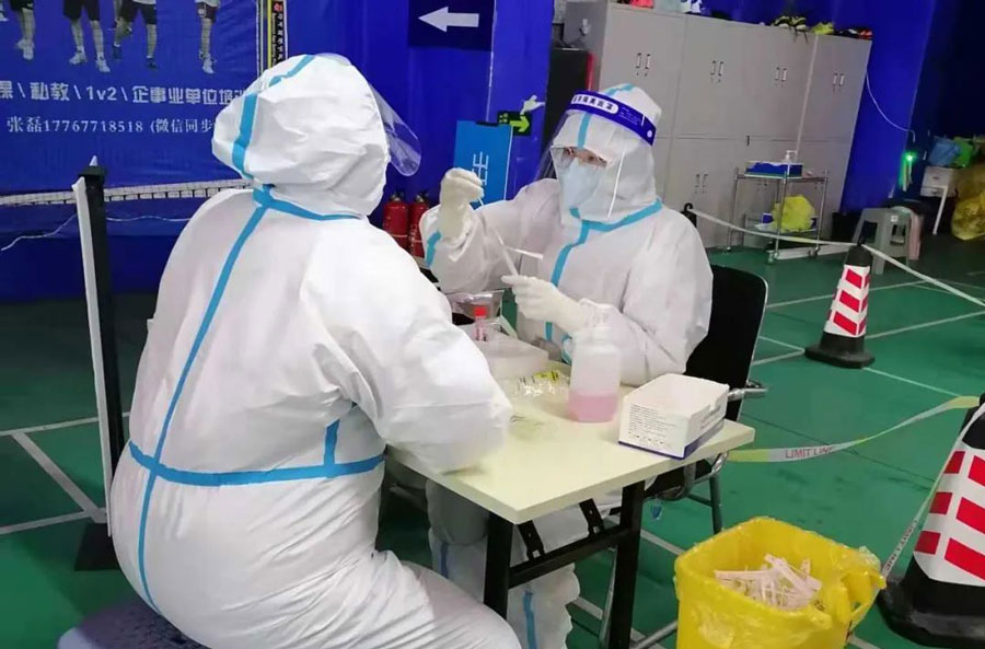 防疫初期,王胜男被分配到二道区负责全民核酸采样工作,为确保不漏一户一人,她日行万步。入户采样,没有电梯,只能靠双脚爬,在密实的防护服下,每天上下几千级台阶,满身大汗后出了楼门又要迎接大雪和寒风的“洗礼”,热汗瞬间变成冷汗,从里到外冰冷刺骨。
