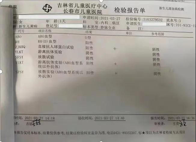 包进主任立刻联络输血科,刘愉主任亲自核实血型、协调,并迅速前往长春市中心血站,寻找与患儿匹配的罕见血型。当时正值周末的深夜,为了挽救这个新生宝宝,长春市中心血站相关工作人员都赶来加班,在血站输血研究所焦丽新主任亲自协调下,供血科刘爱民、输血研究所白日新、成分制备科李炳然在最短的时间内找到了匹配的红细胞,抗体鉴定也证实了是抗-Ec抗体导致的溶血病,为患儿换血治疗争取了宝贵的时间。刘愉主任拿着救命血返回医院时,已是凌晨一点。