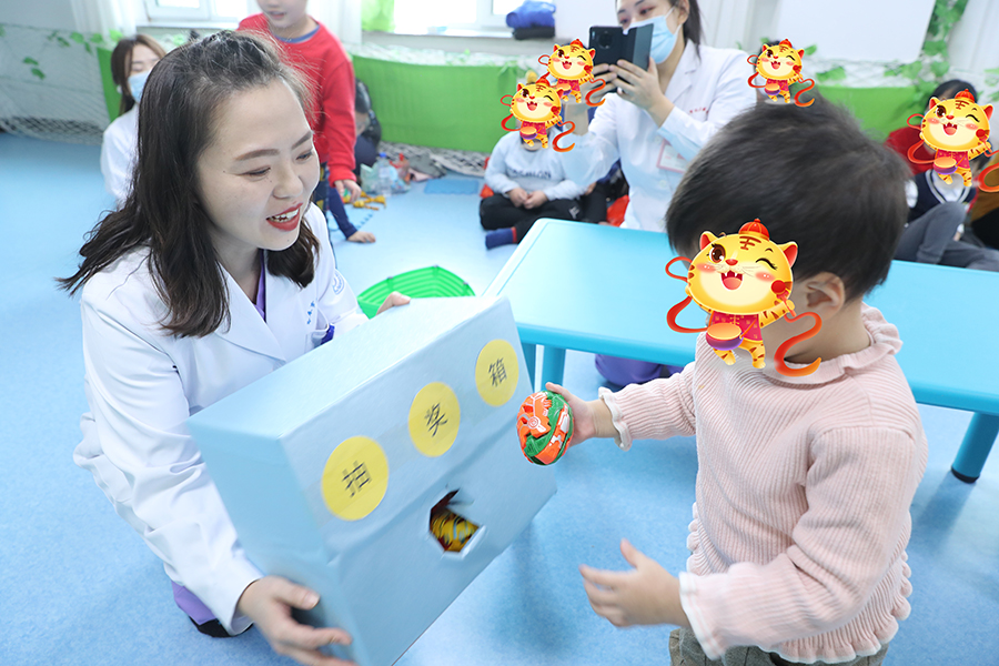 发育行为、心理科现开展孤独症训练、发育水平落后训练、注意力训练、学习能力训练、感觉统合训练、语言语音训练、心理沙盘治疗等。张晓敏主任介绍,有些孤独症患儿从2~3岁就开始在这里训练了。一些常人眼中轻而易举的事,对这些孩子来讲似登天。医家同心,其利断金!经过医务人员、家长的陪伴,攻坚克难,最终如愿以偿,孩子们进步了。