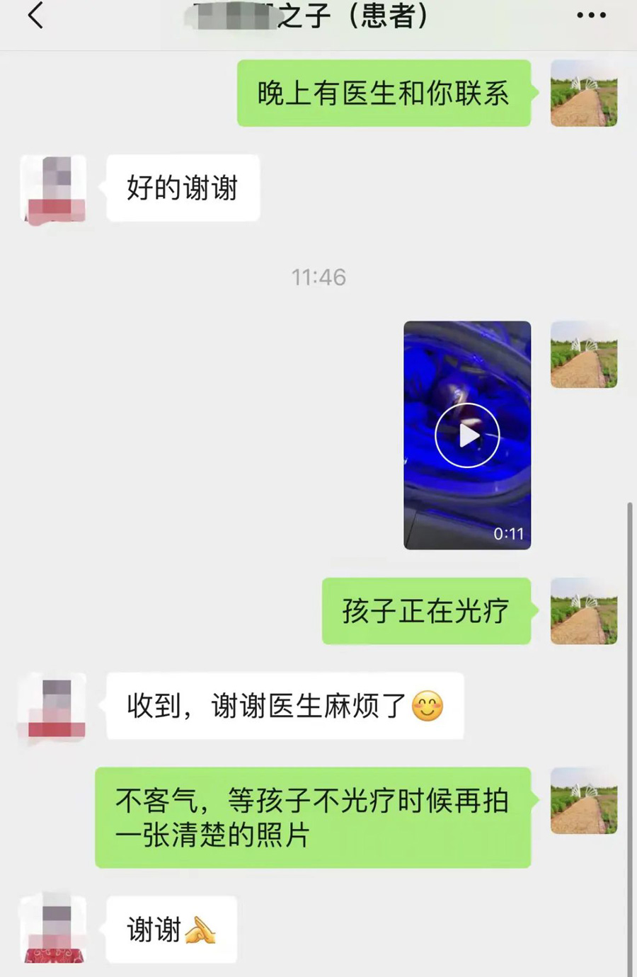 小家伙在入院治疗后的第2天,通过鼻饲吃到了第一口奶。大家看着在保温箱里小小的他,状态一天天好转,特别欣慰。为了缓解母子分离焦虑,每天有专人给孩子拍照片和视频,发给他的妈妈,在救治患儿的同时,也温暖着一位母亲的心。