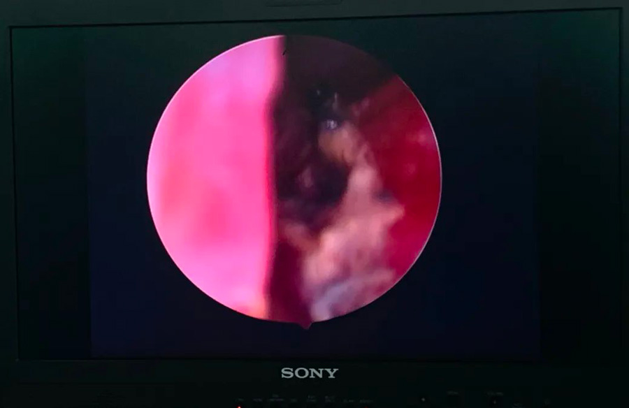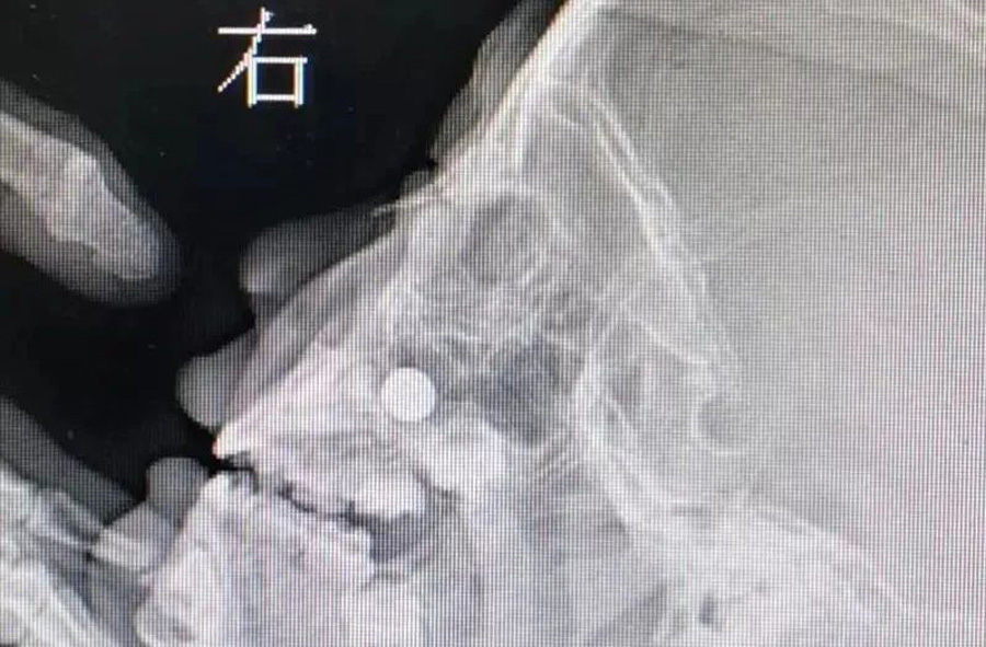 3月23日,120急救车将1名患儿送至a片网站 。患儿3岁,来时明显看出鼻子不舒服。妈妈说,前一天儿子把纽扣电池塞右侧鼻子里了,但在当地医院没取出来。如果真的是纽扣电池,那就危险了,因为电池产生的腐蚀性物质及微电流会造成鼻腔黏膜腐蚀伤,甚至后期可能出现鼻中隔穿孔。门诊医生接诊后,未能看到鼻道中有明显异物,耳鼻喉科开放急危重症绿色通道。由于患儿及家长核酸结果未回报,耳鼻喉科医生在三级防护下做了鼻咽镜检查。在患儿下鼻道底部,发现有黏膜肿胀以及典型的纽扣电池异物放电导致的“冒泡”现象,但异物被肿胀的黏膜包裹,大小及形态显示不清。鼻咽部平片同样显示鼻腔底部有圆形金属异物。