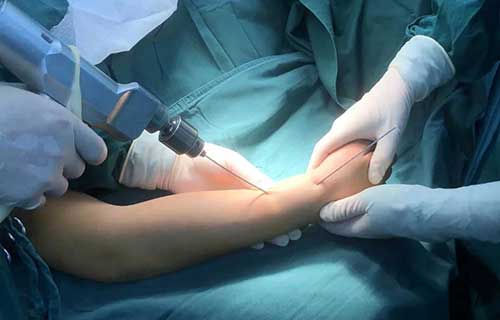小儿手术治疗骨科疾病主张无创、微创治疗。微创手术的优势是手术时间短、切口小、患儿痛苦少、术中损伤小、术后恢复快。在微创手术的大趋势下,小儿骨科不断开展新技术新疗法,如:克氏针撬拨微创治疗儿童长干骨骨折、闭合复位弹性髓内钉内固定术、微型钢板治疗大龄儿童锁骨骨折等;还开展了显微技术,对合并神经血管损伤的骨折、各种手部畸形、指端缺损、手指断离等外伤有丰富的临床治疗经验,解决了传统手术切口长、出血多、损伤大、术后恢复时间长的弊端。