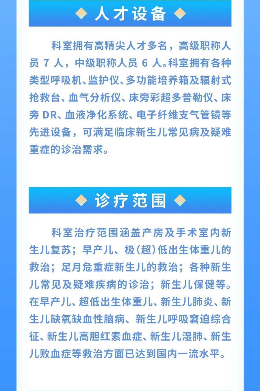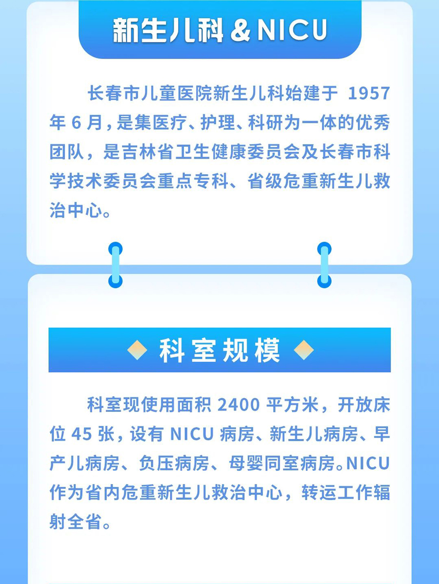名科在线 | 新生儿科&NICU:早产儿、危重症新生儿的“守护神” 儿童医院 |2023-04-21 09:44 上一篇守护儿童呼吸道,儿童医院这个科室您要知道 下一篇弘扬“五四”精神 展青春风采 返回列表 相关信息 新生儿及重症医学科 2018-05-28 新生儿科 2018-07-27 【吉林省重点专科】新生儿内科 2018-05-21 【吉林省州市特色专科】新生儿外科 2018-05-21 王影 2023-09-07