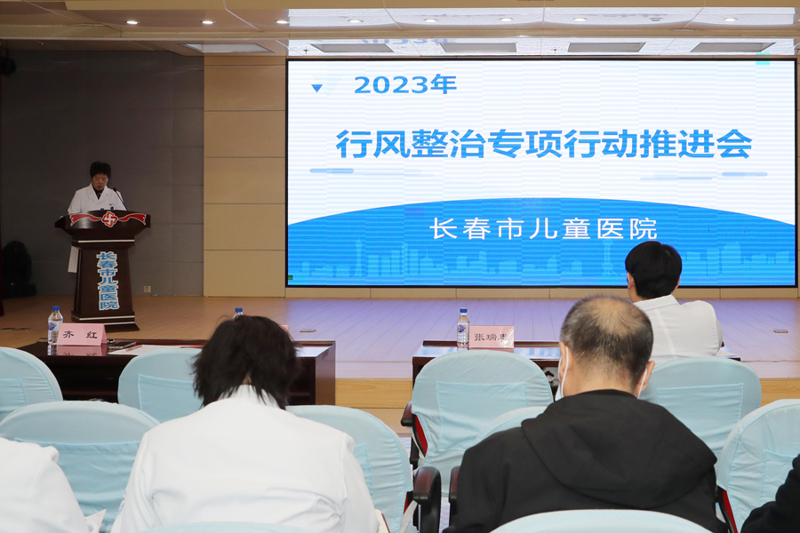 党委副书记齐红在会上传达了长春市卫健委《关于印发2023年长春市医疗行业作风整治专项行动方案的通知》主要内容,并结合长春市卫健委关于行风整治专项行动的指示和要求,对医院行业作风整治专项行动作出相关部署。
