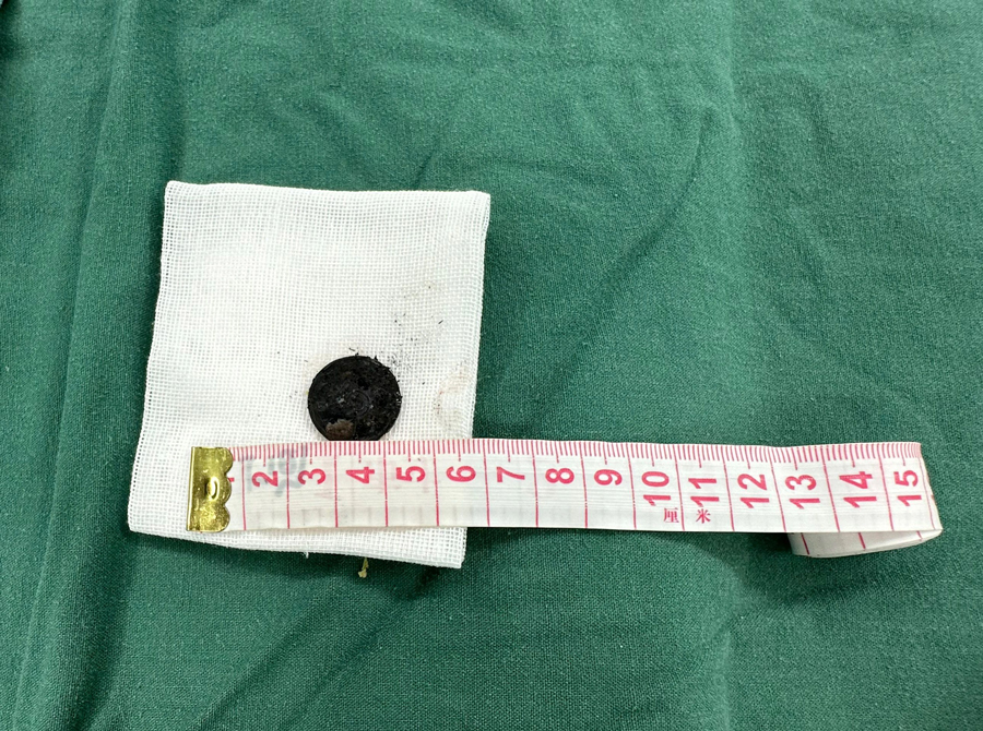 手术非常顺利,当卡在小强食道入口下方的硬币被取出后,家长才知道,原来导致孩子受罪一个多月的竟是一枚硬币。由于硬币卡在食道内时间太长,被取出时颜色已经发黑。术后,小强不能像其他孩子一样迅速恢复呼吸,而是住进了ICU。原来是由于异物坎顿,食道入口关闭不全,小强进食时总会呛咳,导致反复吸入性肺炎,肺功能明显受损,肺内通气量不足、反复发热,全身身体机能下降,所以不能及时苏醒。不过,经过医务人员进一步治疗后,小强现已康复出院。