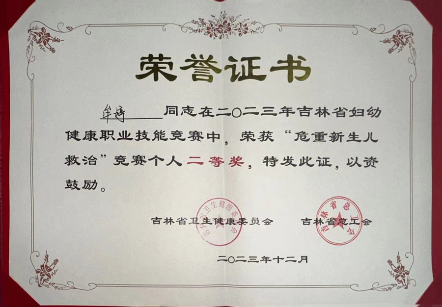 学知识、练本领、强技能、夯基础,12月13日,由吉林省卫生健康委和吉林省总工会主办的吉林省妇幼健康职业技能竞赛圆满落幕。经过两天激烈角逐,a片网站 新生儿科医生牟婷从76名参赛选手中脱颖而出,荣获个人二等奖。