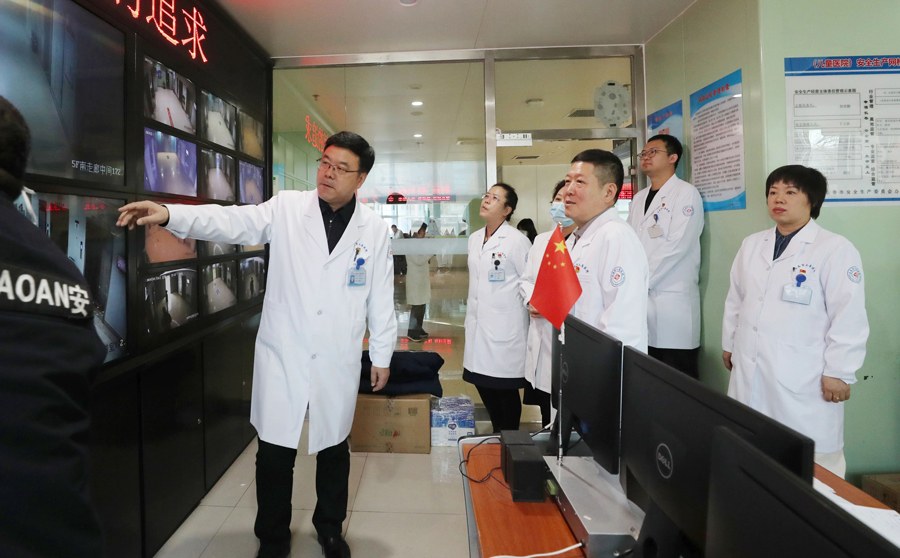 会后,院领导班子成员一行分别来到配电室、食堂、监控室、消防控制室、静点中心、心理门诊等重点部位进行实地检查。在检查过程中,张瑞忠书记详细询问了各设备设施的使用情况、安全生产规章制度的执行情况,着重检查燃气及电器安全,叮嘱在岗人员要时刻紧绷安全生产这根弦,任何时候都不能有麻痹大意的思想和侥幸心理,要把院内各项安全举措做深做实。