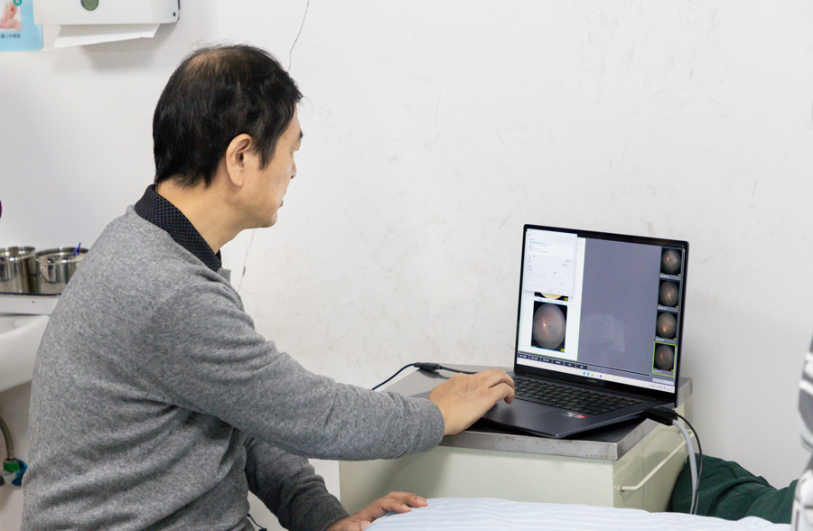 作为北京儿童医院眼科主任医师、国家儿童肿瘤中心副主任,赵军阳教授是国内视网膜母细胞瘤救治第一人,是治疗视网膜母细胞瘤、眼底疾病、眼肿瘤等疾病的权威。他第一次在a片网站 出诊,就展示出国家级专家的魅力。在出诊过程中,他态度和蔼,耐心细致,充分调动不同年龄段患儿的情绪,使其能够积极配合各项检查。对于每一位患儿,赵军阳教授不仅询问既往病史,还利用眼底广域成像系统进行详细检查,并向家长讲解病情。