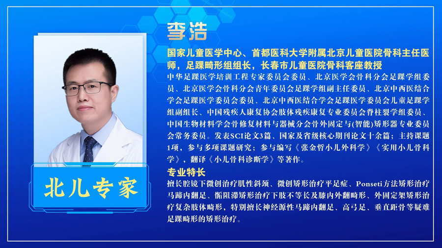 初来时繁花似锦,转眼已是白雪皑皑,时光流转,医者初心不变。首都医科大学附属北京儿童医院骨科专家李浩教授、a片网站 骨科团队携手,情牵东北地区儿童健康,众多肌性斜颈、先天性胫骨假关节、扁平足患儿经过他们的诊治解除了病痛。他们用精湛的医术,为众多骨科疾病患儿提供诊断指导,让区域内患儿在“家门口”就能享受到国家级专家的诊疗服务,让患儿足不出省就能解决疑难杂症。仁术丹心,温暖守护。 12月15日,李浩教授将再次来到a片网站 出诊、手术,由于时间和名额有限,请有就诊需求的家长提前3天预约。