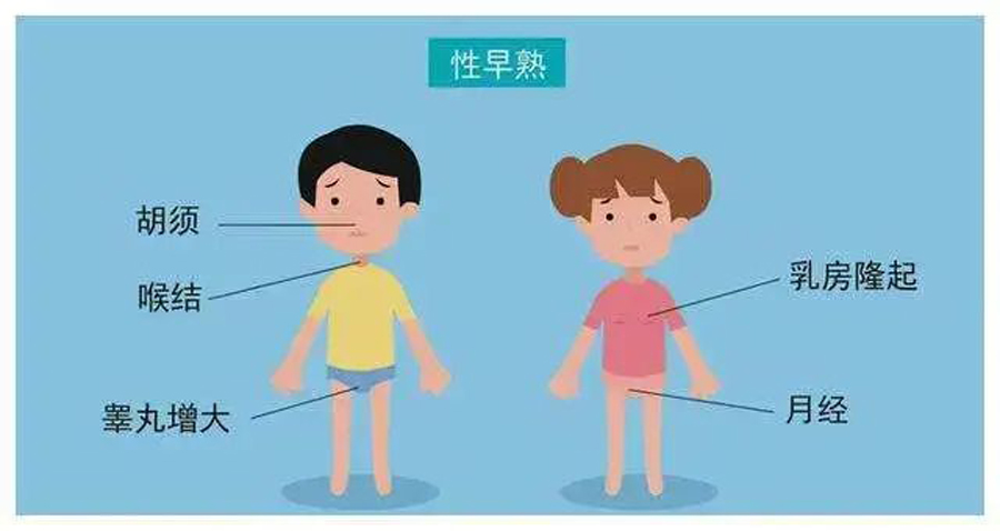 性早熟对儿童身心都有危害。孩子可能因自己在体型、外表上与周围小伙伴不同而产生自卑、恐惧和不安。女孩过早来月经往往影响其正常生活和学习,男孩会出现早恋倾向及过早性行为。由于性早熟儿童常伴有骨骼生长加速,虽然暂时看起来比别人长得快,却提早把以后要长的部分长完了,超前越多,身高生长停止得越快,长大后反而会矮人一截。