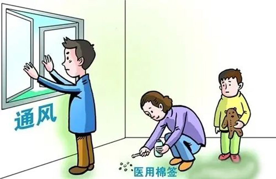 第二步:一定开窗通风,稀释空气中水银蒸汽的浓度。
