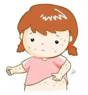 主要临床表现:初起为红色丘疹,继而呈绿豆大小红色风团样丘疹,有些顶端有小水疱。