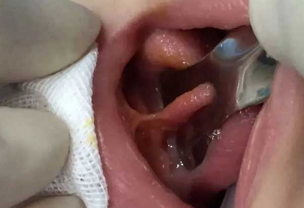 付亚君说,舌系带短是医学用语,俗称“大舌头”。舌系带是舌下正中联系舌头与口底的薄膜,俗称“舌筋”,正常人舌头向上卷起时可以看到。舌系带短是一种先天性发育异常,主要表现:舌头的正常活动受到限制,不能伸长到口外,或往上不能接触上唇;舌前伸时,因舌系带短拉着舌头,使舌头的背面出现凹陷,呈W形。