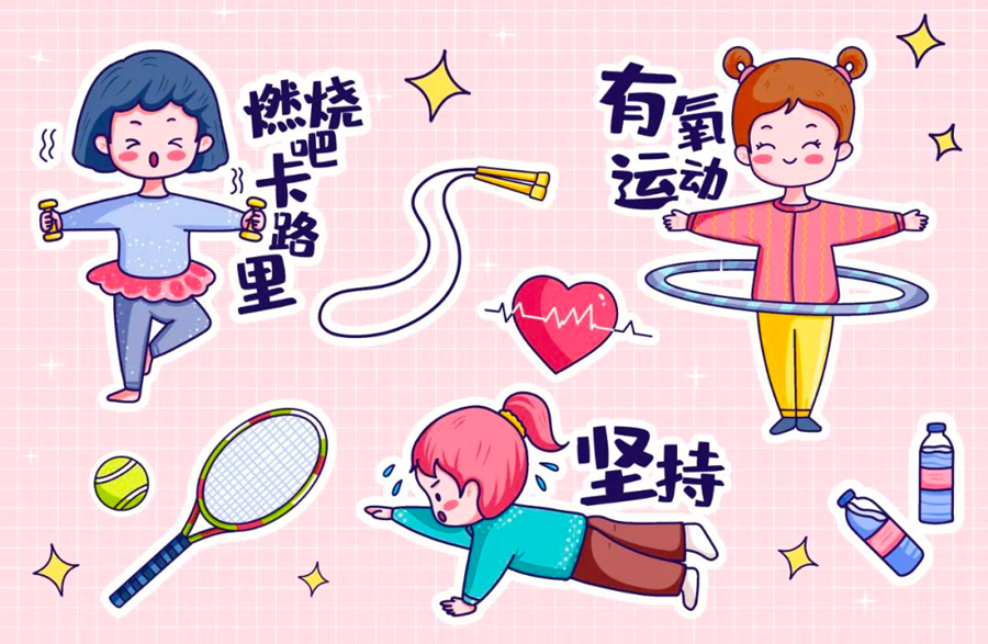 研究表明,中等强度的有氧运动(即达到最大心率的60%~80%,最大心率=220-年龄)是机体脂肪氧化的最理想状态,更有利于儿童、青少年减重。由于脂肪的水解及脂肪酸经血液转运并进入肌组织中均至少需要15分钟,因此想要达到消耗脂肪的效果,每天应坚持中等强度有氧运动超30分钟,每周至少150分钟;运动时间可逐渐增加至每天60分钟、每周300分钟。相关研究表明,有氧运动需要持之以恒。坚持3个月以上、每周 3~6 次、每次40~90分钟的中等强度有氧运动对儿童、青少年减重效果最佳。