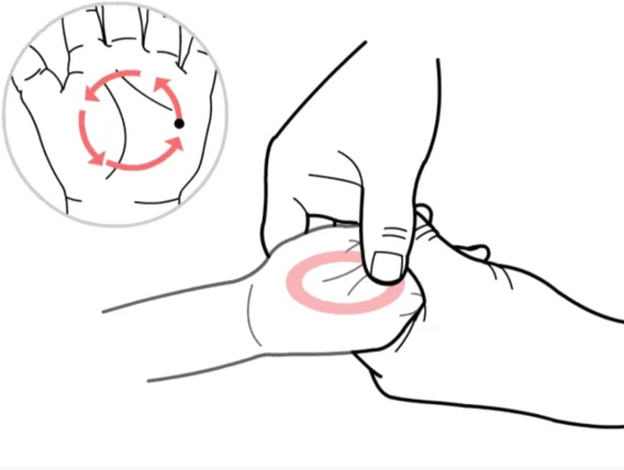 操作:沿整个小指掌面自指根直推向指尖300次。