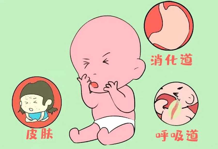 韩兆香介绍,过敏性消化道疾病以速发型过敏反应(IgE介导为主)比较常见,比如牛奶蛋白过敏,严重者可同时出现消化道疾病(腹痛、腹泻、便血等)、呼吸道疾病(哮喘、鼻炎或花粉症等)、特异性皮炎(皮炎、皮疹等)或急性喉炎等系统改变,但至少涉及其中两个系统疾病。不严重者消化系统可能表现为慢性腹痛、腹泻、反酸、食欲差等症状。
