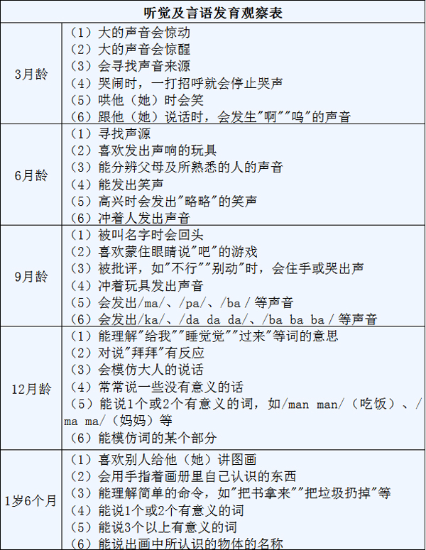 副主任医师李洪波:婴幼儿期,可以根据《听觉及言语发育观察表》对应的月龄进行评估,如果发现异常,需要到医院检查。幼儿期至学龄期,如果孩子有“耳朵闷”;与人交谈时经常表现出没有听清;有眼睛紧盯着对方嘴的习惯;呼唤时无反应或反应迟钝;发音不准确,讲话不清楚;上课注意力不集中;看电视时,距离电视很近,或喜欢将电视机声音开得很大等情况,需要到医院进行听力评估。